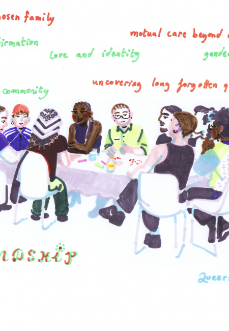Choose a story or example you would like to share with the group. Send us a drawing, image, short text, poem, symbol, or screenshot that represents your story. Email it to activities@queerin.be by April 25th. We will risograph-print all submissions and bring them to the Supra, so that you can use them for the tablecloth.