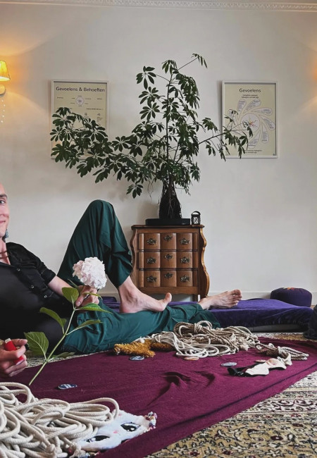 What is kink? Kink is enjoying something intimate you have been taught not to enjoy. Having fun and expansive kinky adventures starts with our capacity for building caring and consensual scenes. In this workshop we dive into some of the language and elements we can use for an intentional experience. With this knowledge we dive into a rope flow meditation, allowing for an accessible exploration of a power exchange in a caring setting.