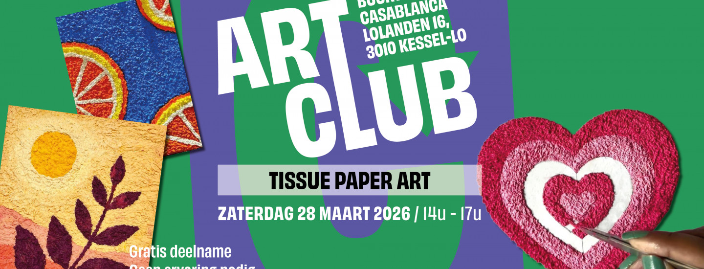 Kom 28 maart naar de art club en werk mee aan een tissue texture painting!