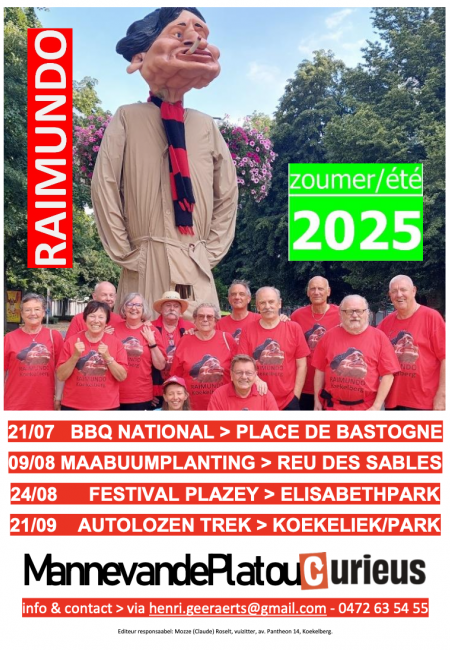 Gienen Brussels Stamenei in de zoumermoinne bei de Manne van de Platou in Koekelberg. Mo we gon wel gelak as eeder joêr op stap mè onze ruis RAIMUNDO (alias Raymond Goethals vè wee dat et nog ni zaa weite). Zoe zemme mergen 21/7 op de Fête Nationale op wandel tot on de place de Bastogne vèn BBQ NATIONAL. Alleman es do vanaaiges naaig welkom.