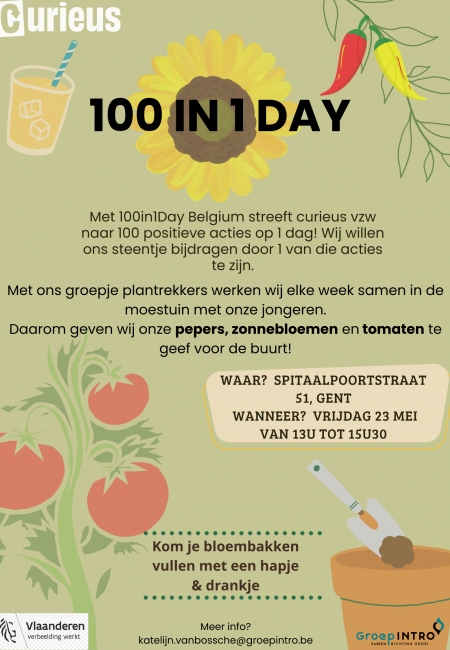 Met 100in1Day Belgium streeft curieus vzw naar 100 positieve acties op 1 dag! Wij willen ons steentje bijdragen door 1 van die acties te zijn.