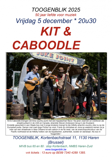 Georganiseerd met Curieus SchaerbeekKit & Caboodle brengen old time country punk met een Appalachian flavor. Na jaren zwerven en overleven als straatmuzikant in de USA en Canada, strandde Steven Andsowon terug in zijn thuisland.