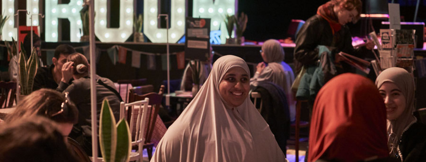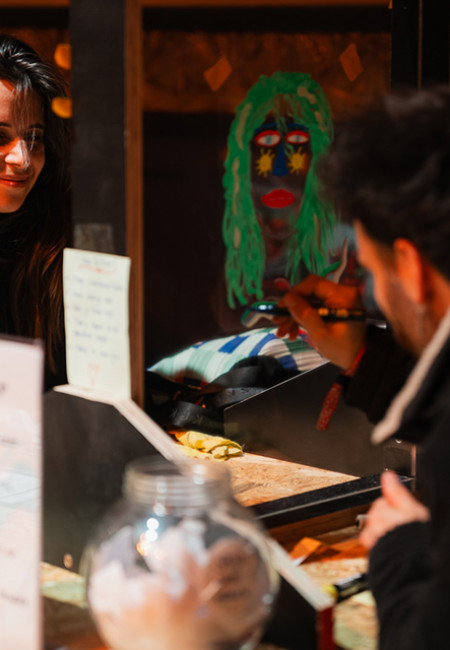 Drie dagen lang kan je in en rond de Concertzaal van De Vooruit terecht in het bruisende hart van het Festival van de Gelijkheid: ons gezellig festivalcafé. Een plek waar je vrij kunt binnenlopen – geen ticket nodig – om de sfeer op te snuiven, tot rust te komen of gewoon te genieten van een drankje tussen de inspirerende activiteiten door. Verwacht je aan verrassende ingrepen en creatieve uitspattingen die het festival extra kleur geven.