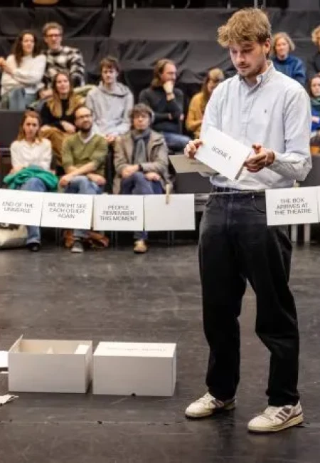 Handle with Care is theater tot zijn essentie gestript. Geen acteurs, geen techniek. Alleen een doos. Én jullie.Vrijstaat Curieus krijgt een doos toegestuurd. De instructies zijn duidelijk: Verzamel een groep mensen, op een bepaalde dag, op een bepaald uur. Laat het publiek plaatsnemen. Zet de doos in het midden van het podium. Het publiek wacht. En dan staat iemand uit het publiek op, en opent de doos.