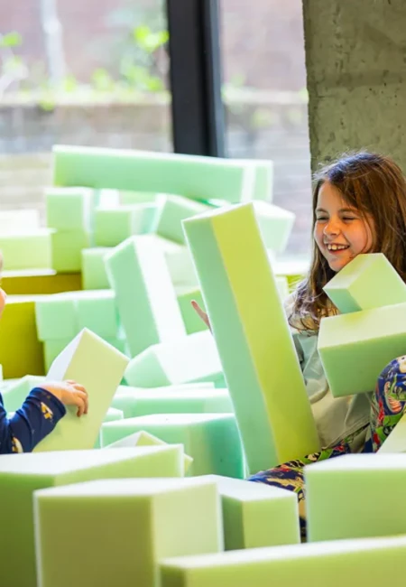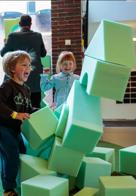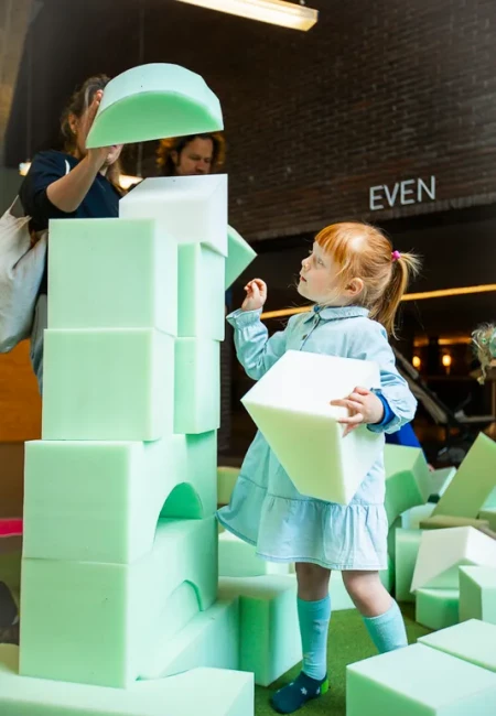 Word zelf bouwmeester en maak je ideale kamer/huis/flatgebouw/school/ schouwburg/dorp/stad/land/wereld met schuimblokken. Opgelet, jouw bouwplannen kunnen gedwarsboomd worden door de ideeën van de andere aanwezige bouwlustigen. Werk samen en creëer jullie dorp. Constructie, deconstructie en reconstructie!Onderzoek naar hoe we ruimte delen