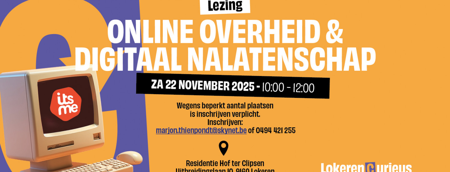 Welke online platformen en apps biedt de overheid aan op vlak van gezondheid, leef- en woonomgeving, justitie, mobiliteit,….? Hoe kan je veilig inloggen? Hoe werkt MyGov.be, Itsme, en Mijn Burgerprofiel? … Hoe regel je best je digitale zaken voor jouw nabestaanden? Wat zijn de tools en waarop moet je letten? Ontdek het tijdens deze lezing en zet een stap vooruit in je digitale vaardigheden!
