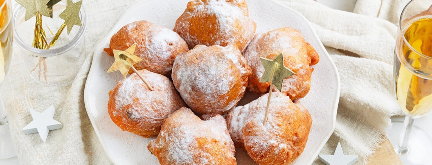 Wie na de wandeling een nieuwjaarsbrief voorleest, wordt getrakteerd op gratis smoutebollen, zoals elk jaar gebakken door Geert en Ilse.